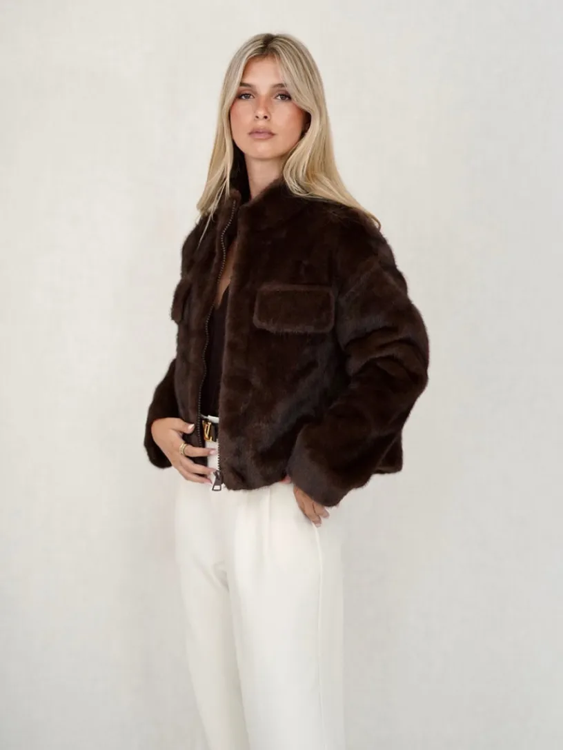 La Cazadora Pelo Globo es la combinación perfecta entre estilo y abrigo para esta temporada. Confeccionada con un suave tejido de pelo en el exterior y forrada con tejido de piel en el interior, esta cazadora de mujer te mantendrá abrigada incluso en los días más fríos, siendo además increíblemente gustosa al tacto.