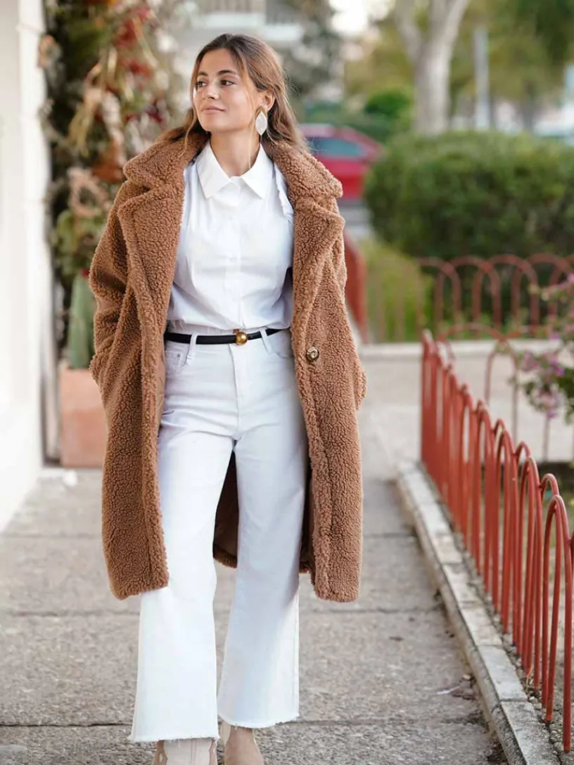 El Abrigo Becara es un esencial para mantenerte abrigada y con estilo durante los días más fríos. Confeccionado en suave tejido de borreguillo, este abrigo de mujer ofrece calidez sin comprometer la elegancia. Su diseño de corte largo oversize proporciona una cobertura amplia y un look moderno.