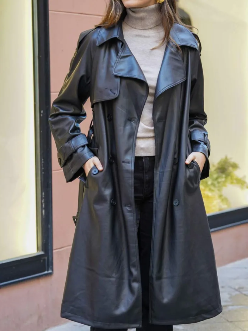 El Abrigo Iconic es el equilibrio perfecto entre estilo, funcionalidad y sofisticación. Diseñada para mujeres modernas que buscan destacar en cualquier ocasión, esta prenda está confeccionada en polipiel de alta calidad, ofreciendo un acabado suave y elegante que eleva cualquier look.