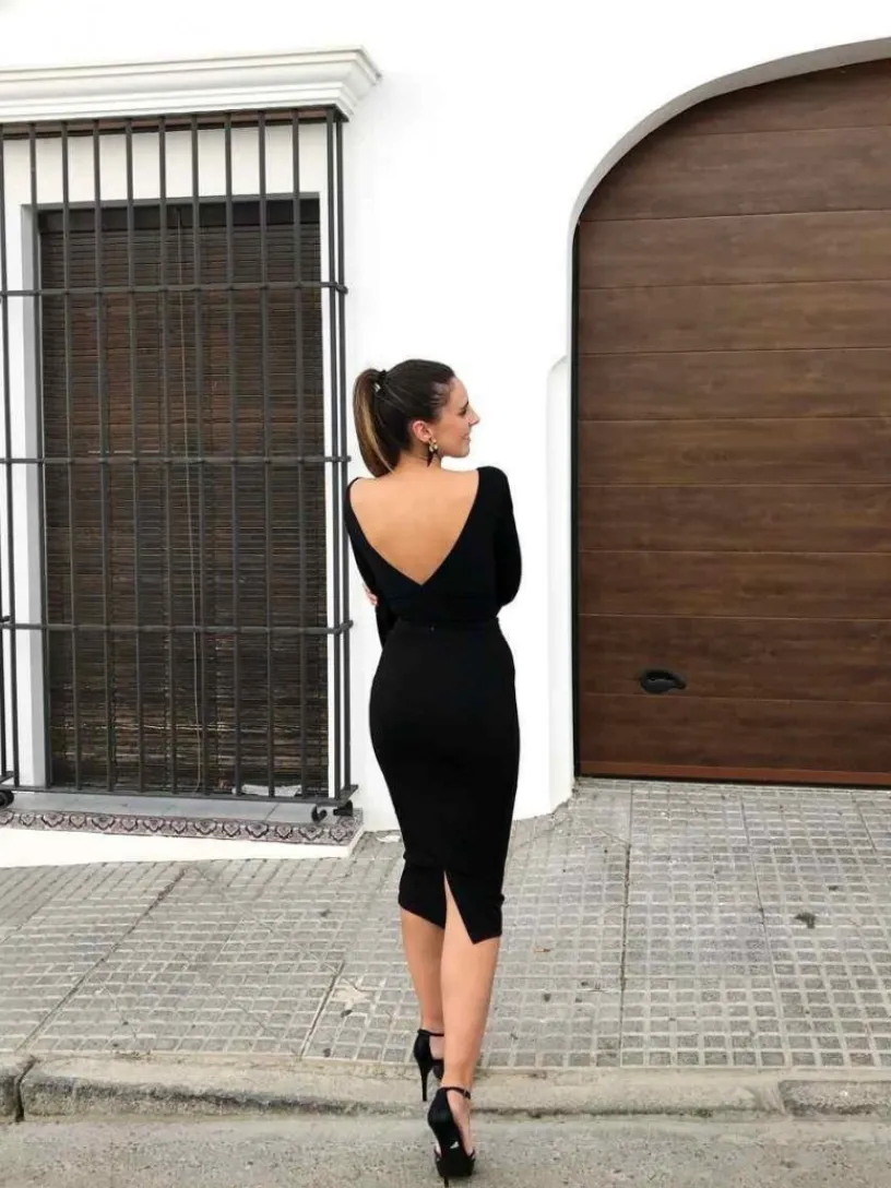 Nuestro body de fiesta es ideal para conseguir un look ideal. Es un body elegante de tejido de punto sedoso con un gran escote trasero en forma de V, y un escote delantero con terminación en nudo. A nosotras nos encanta, y nos enamoran por completo sus mangas amplias y estilosas.