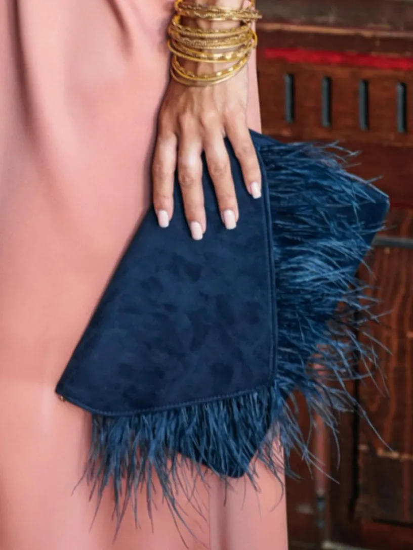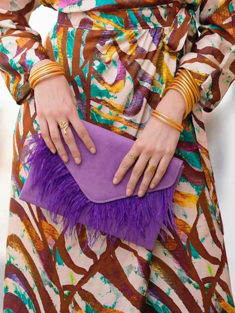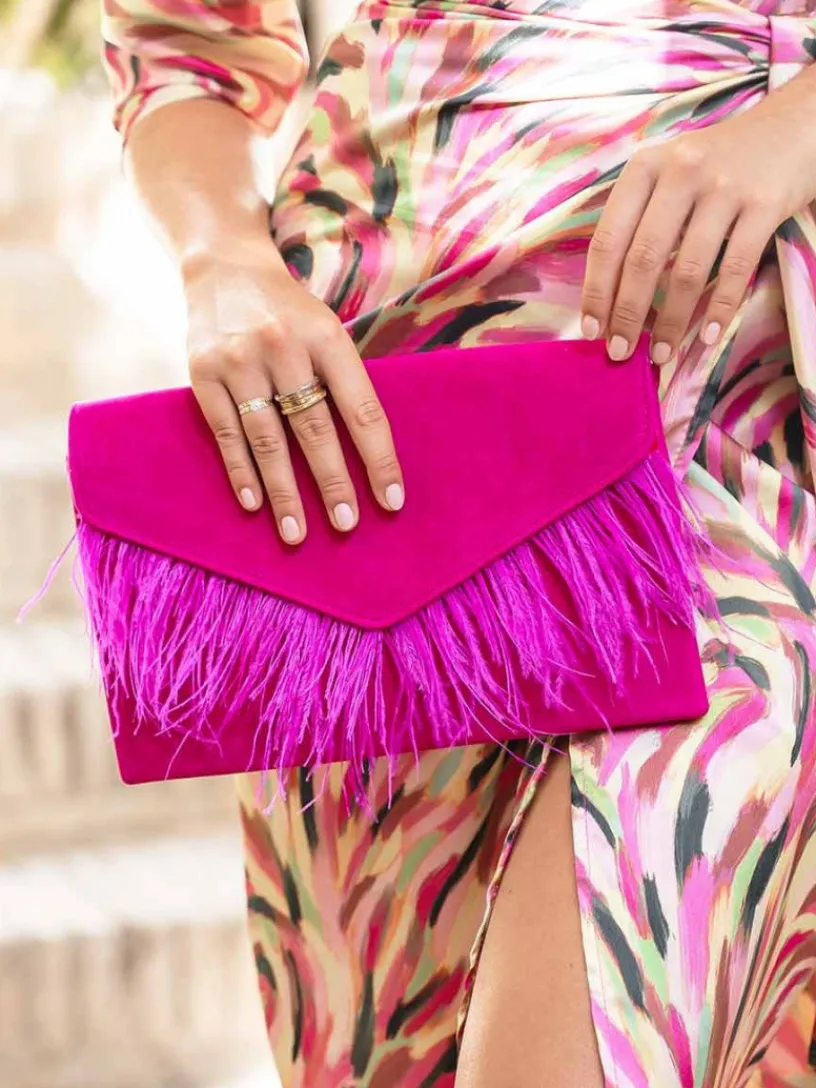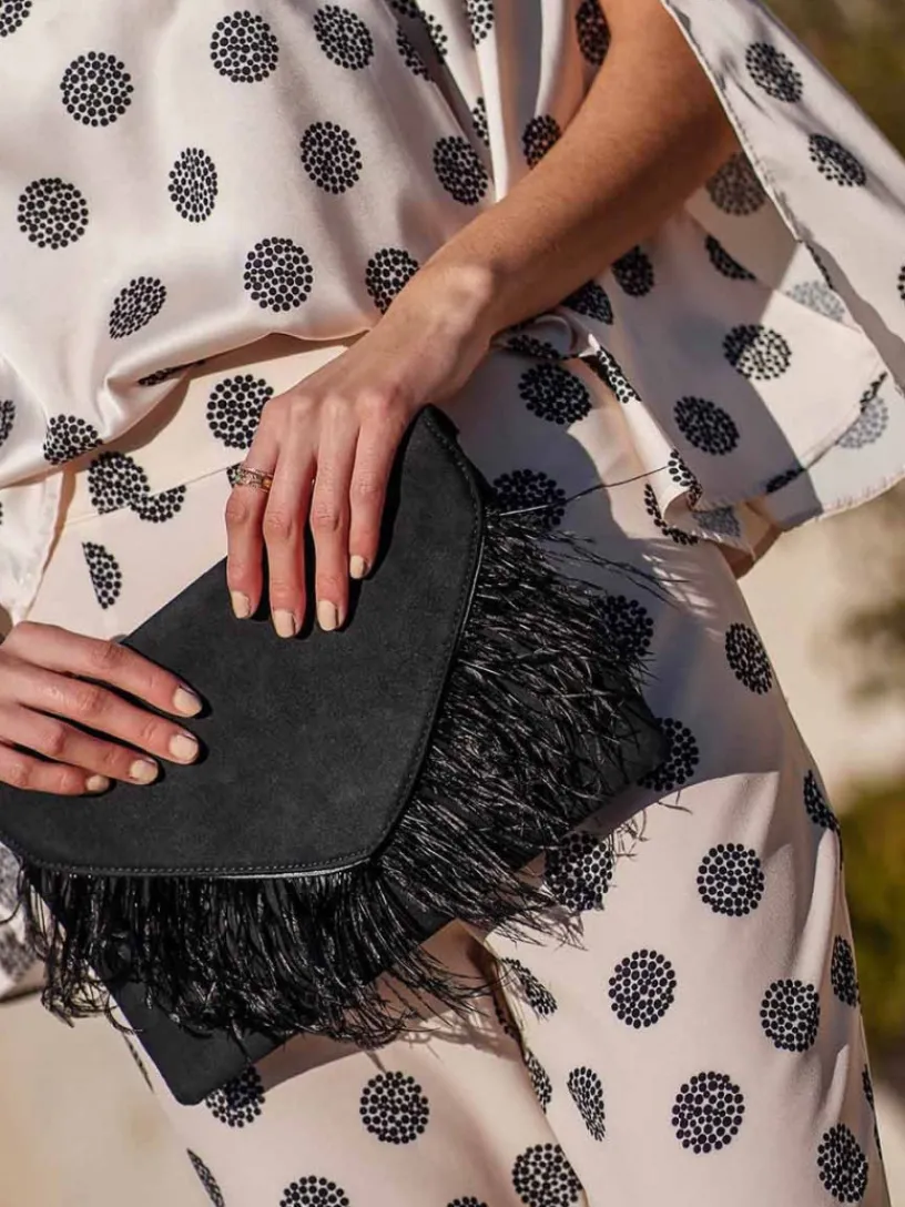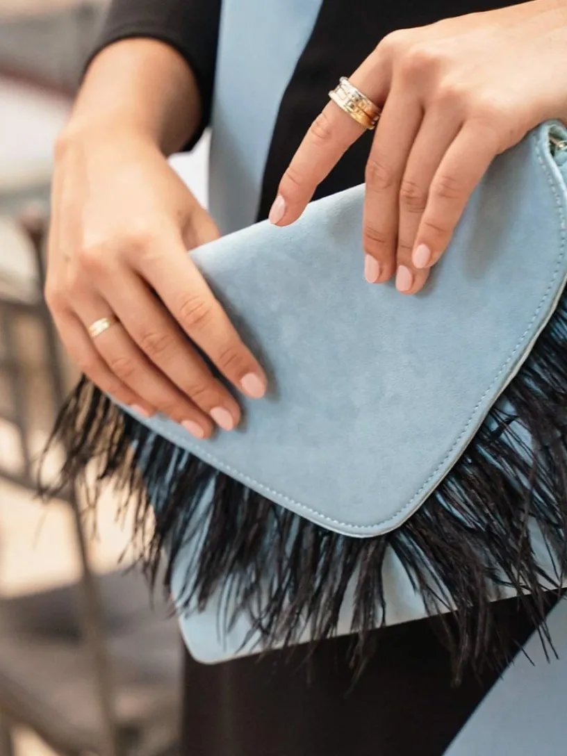 Sabemos que mantener tus esenciales bien guardados en un día clave es muy importante para ti, por ello te traemos nuestra Cartera Plumas, una cartera de fiesta con la que no perderás la elegancia.