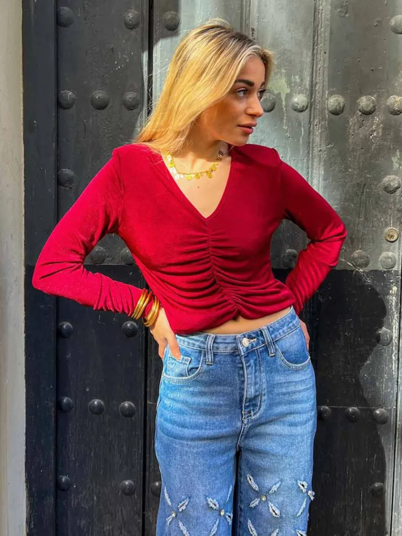 Top Fruncido Escote V, el aliado perfecto para miles de ocasiones y looks, desde casual hasta outfits con estilo chic.