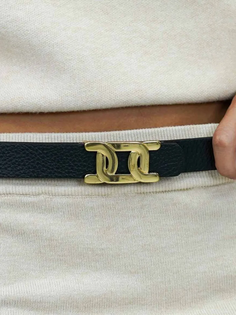 ¿Quieres saber más sobre nuestro Cinturón Hebilla Enlace? Es un cinturón de mujer disponible en dos colores: negro y camel. Es perfecto para combinar con miles de looks ya que son un básico necesario en el armario de las amantes de la moda.