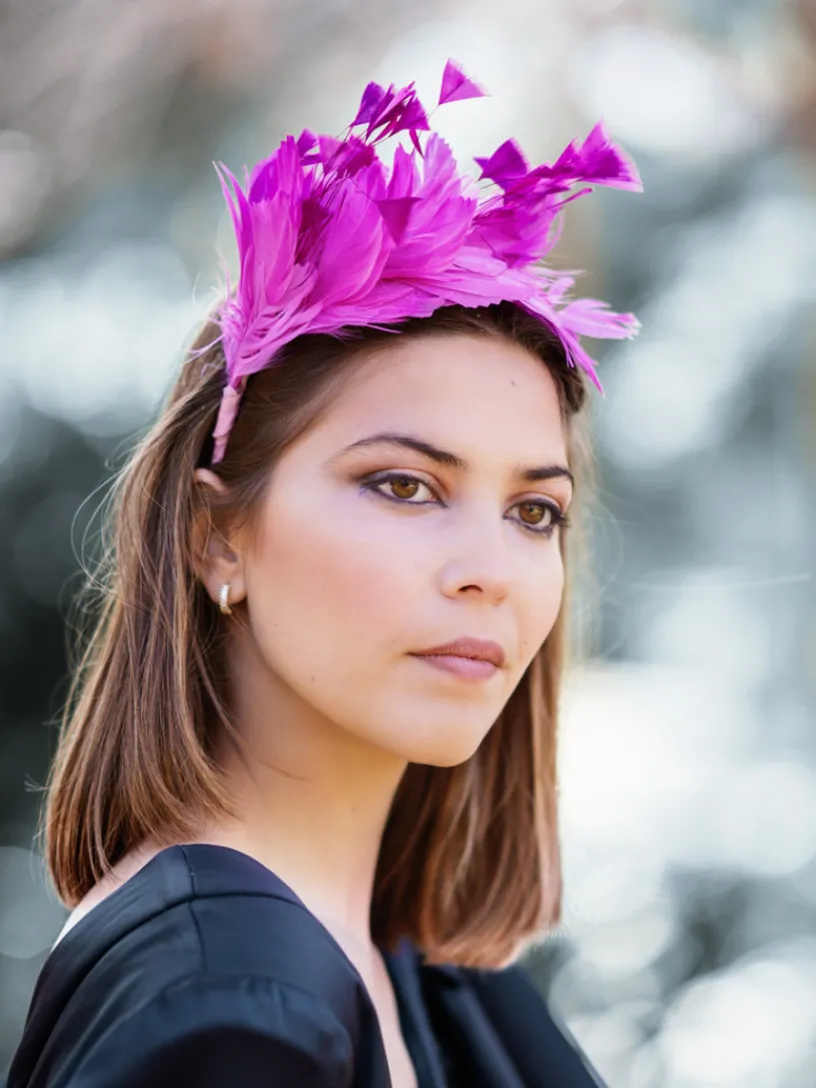 Os presentamos nuestra preciosa Diadema Plumas Risata, un tocado de fiesta elegante perfecto para combinar tu vestido de fiesta.