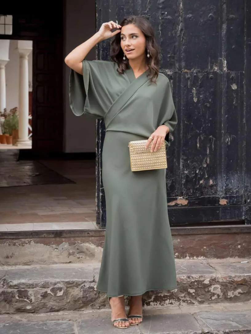 El top tiene mangas amplias y se cierra de forma cruzada, permitiéndote ajustarlo según tu preferencia y dejando un escote cruzado que aporta un toque chic y es perfecto para madres lactantes. Su diseño versátil lo convierte en una prenda clave para miles de ocasiones.