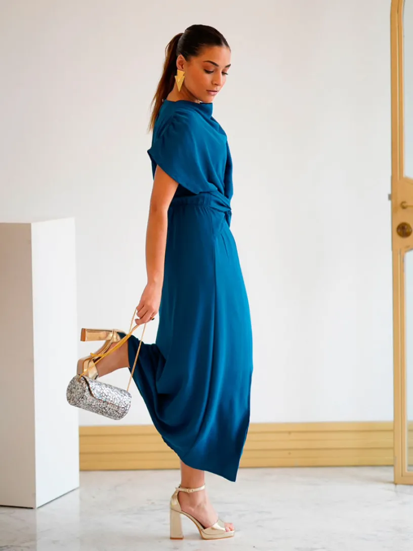 Nuestro vestido midi es una opción versátil para diversas ocasiones, desde eventos formales hasta cenas elegantes.