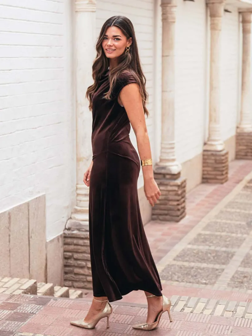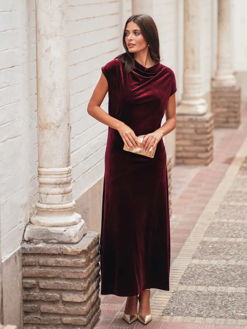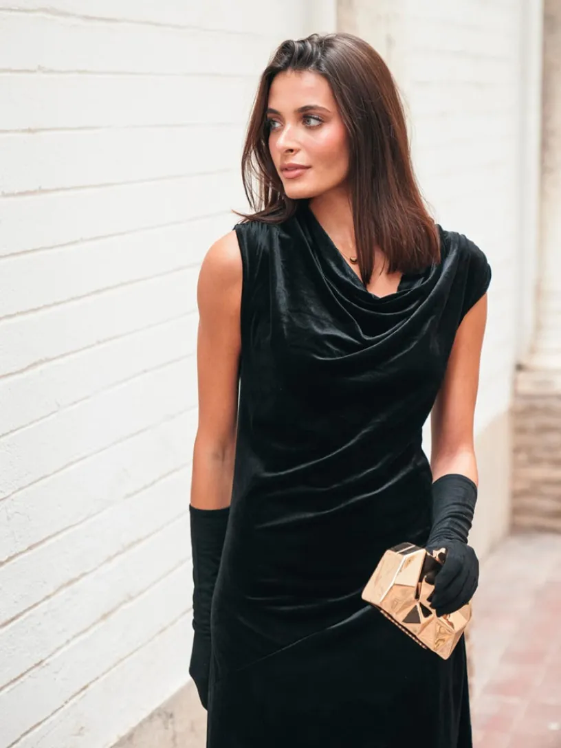 Llega la temporada en la que el terciopelo se convierte en un must-have en cualquier armario, añadiendo ese toque elegante que define los looks de invierno. El Vestido Terciopelo Gloria es perfecto para vestir con estilo en tu cena de Navidad, comida de empresa o cualquier evento especial.