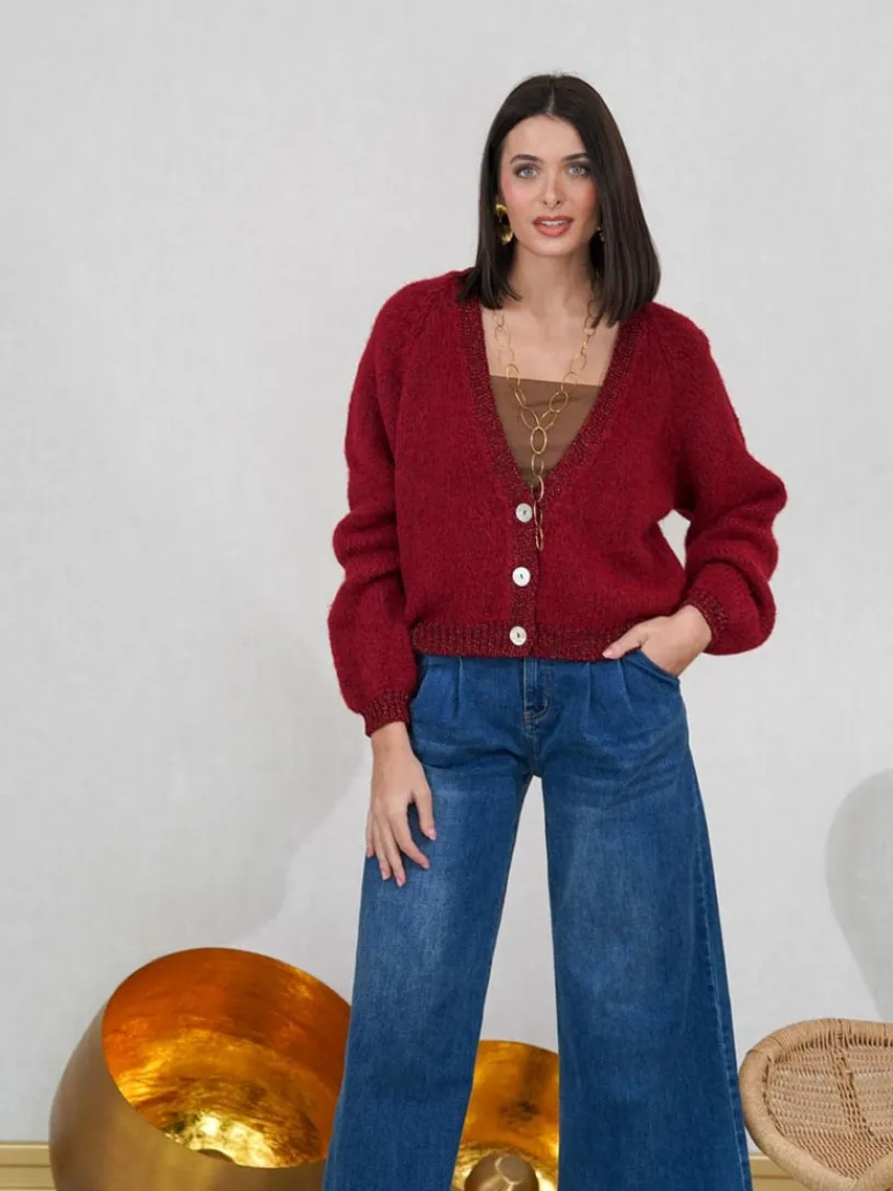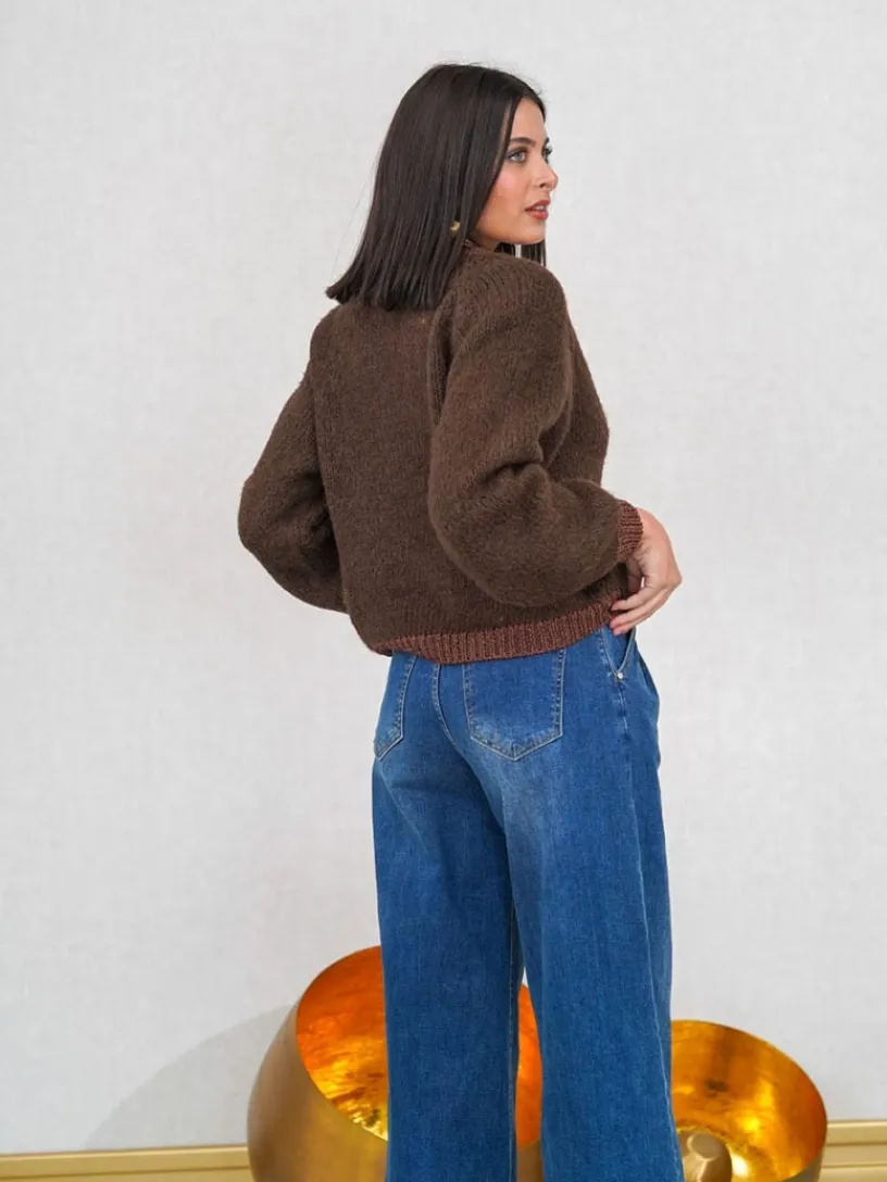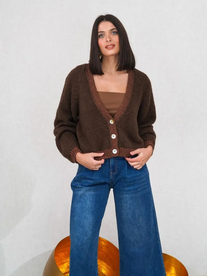 El Cárdigan Contraste Brilli es un cárdigan versátil que eleva cualquier look. Diseñado para adaptarse a cualquier ocasión, puedes combinarlo con jeans para un estilo casual o con una falda lencera para un toque chic.