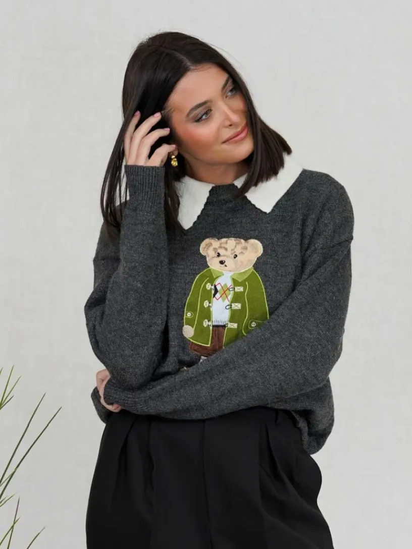 El Jersey Bear combina a la perfección estilo, calidez y un toque divertido para esta temporada. Diseñado para mujeres que valoran la moda con personalidad, este jersey destaca por su confección que garantizan suavidad y comodidad.