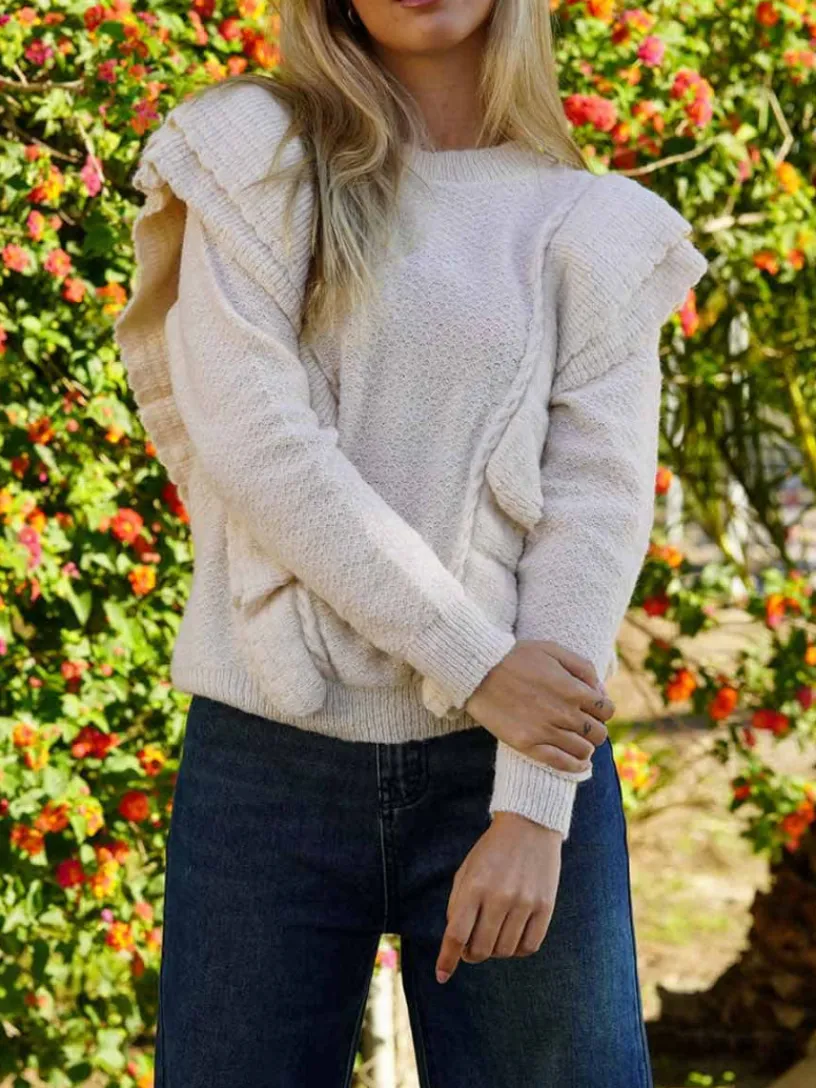 El Jersey Dos Volantes destacado por sus volantes dobles en las mangas y el cuerpo, que aportan un toque femenino y único.