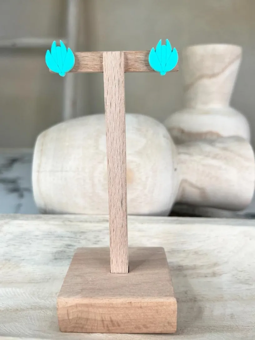 Nuestros pendientes de mujer miden 1,5 centímetros aproximadamente y están fabricados en metacrilato con fornitura de acero hipoalergénico. Son unos pendientes que no pesan nada y su cierre es de tornillo.