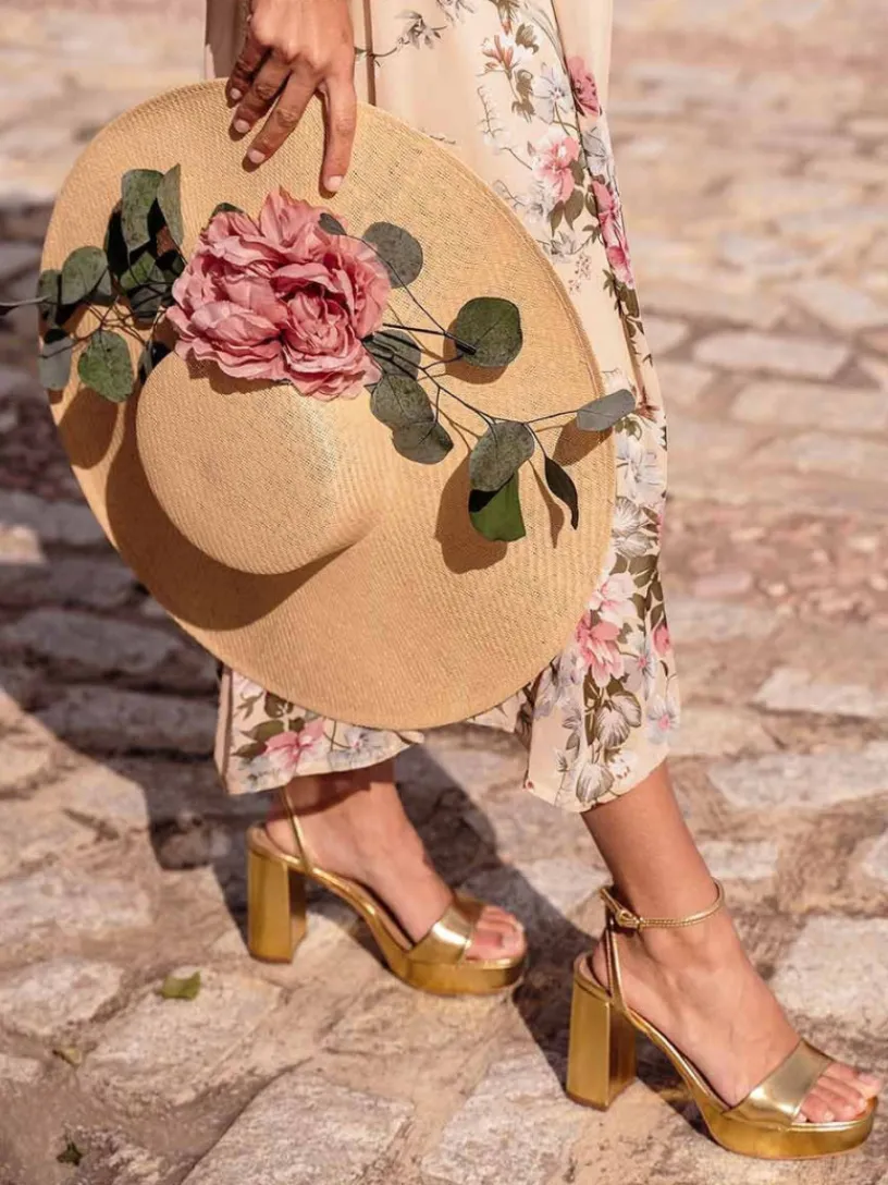Nuestra pamela para bodas lleva en la zona superior al frente una flor rosa y algunas ramitas con hojas verdes, unos apliques que quedan sutiles y elegantes. Así que si eres amiga de la novia, hermana de la novia o simplemente quieres ser una invitada perfecta, no dudes en apostar por este tocado para invitadas de bodas con el que serás el centro de todas las miradas.