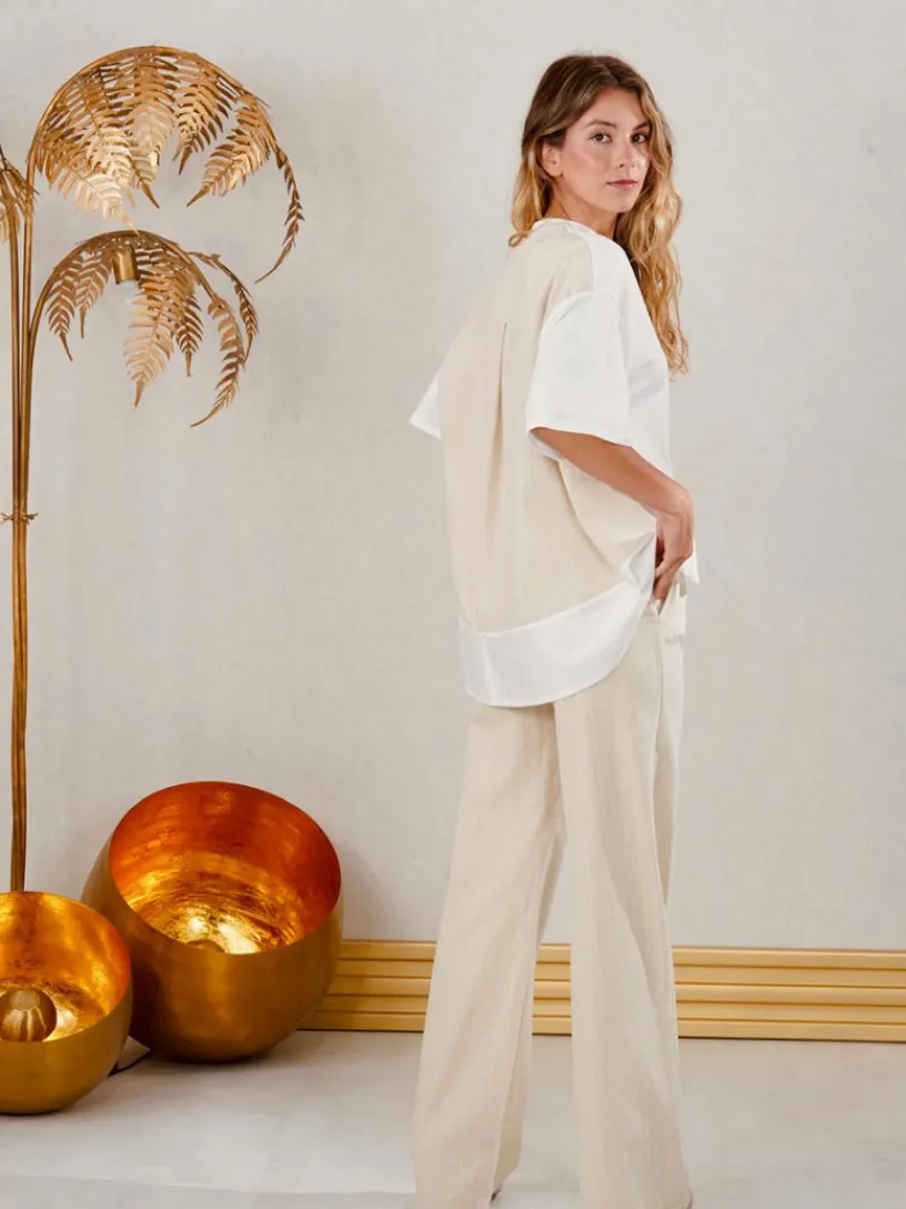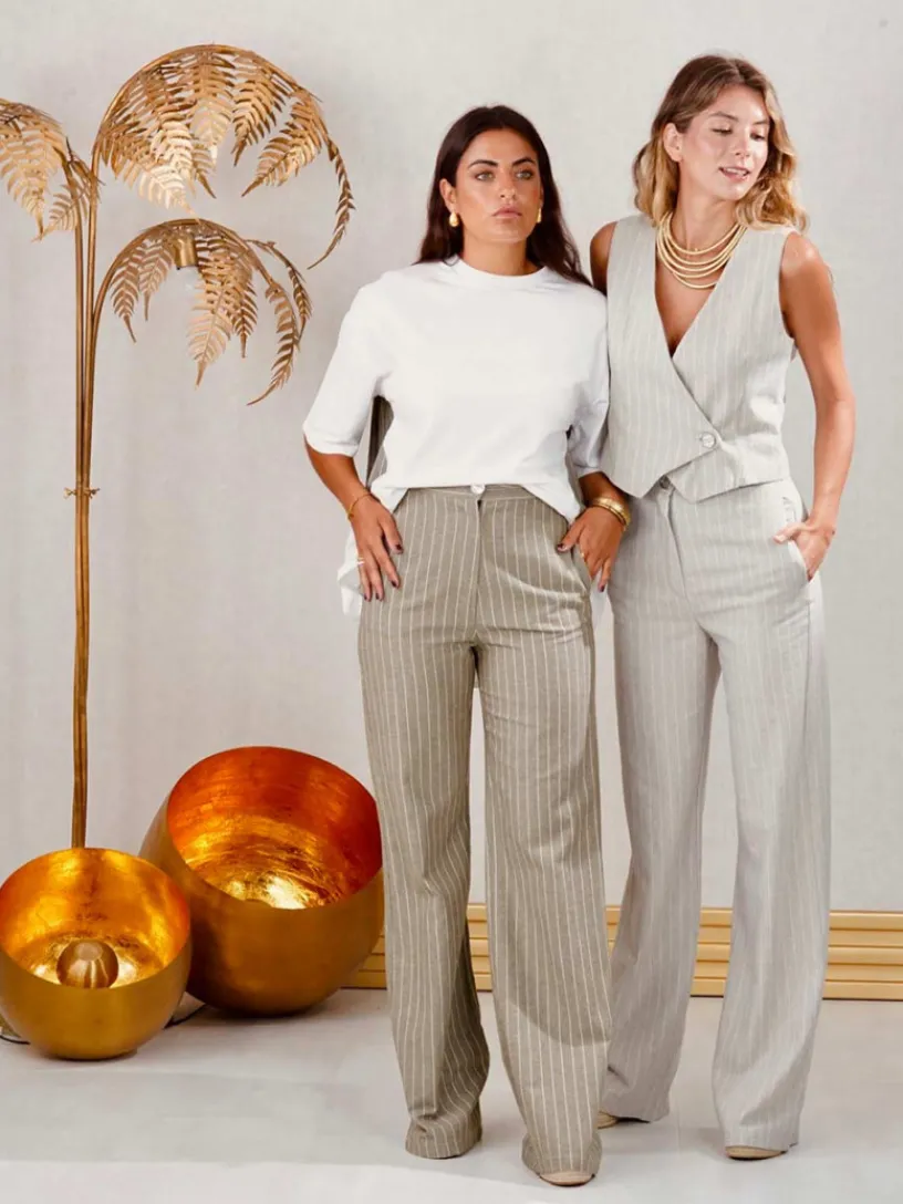 Para las amantes de los pantalones rectos de rayas os traemos nuestro Pantalón Isla.