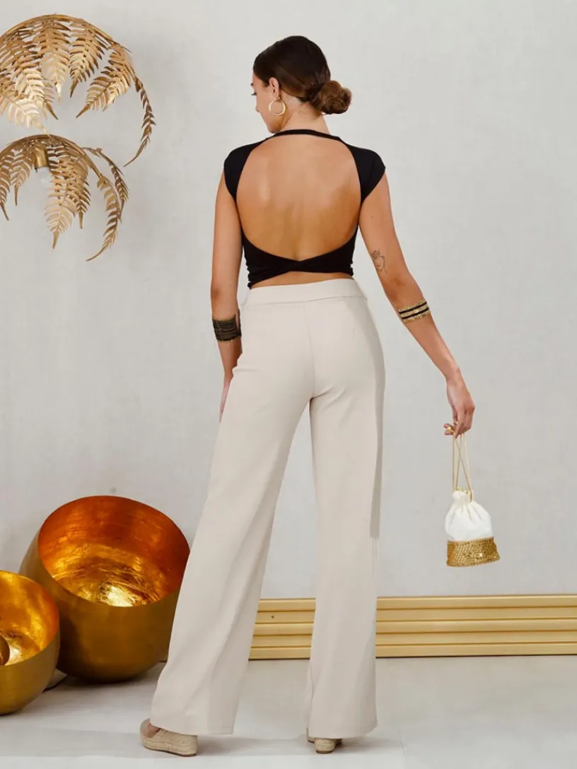 Pantalón de mujer con diseño de pierna ancha para que te sientas cómoda en todo momento. Confeccionado en tejido fluido y fresco, perfecto para no pasar calor esta temporada. Y, cerrado con cremallera invisible en el lateral izquierdo.