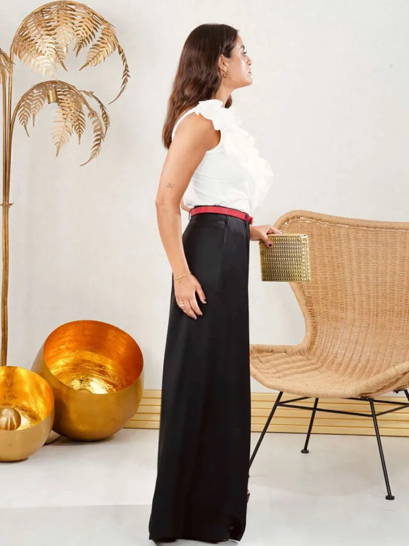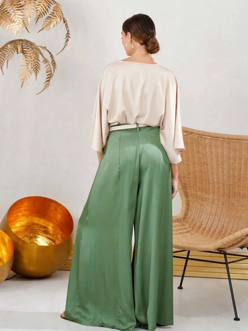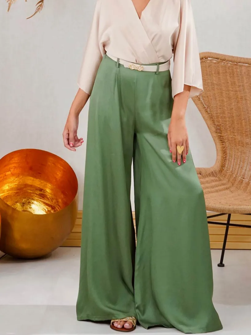 Pantalón Fluido, un pantalón de mujer con corte wide leg. Su pierna ancha aporta libertad de movimiento y un toque chic.