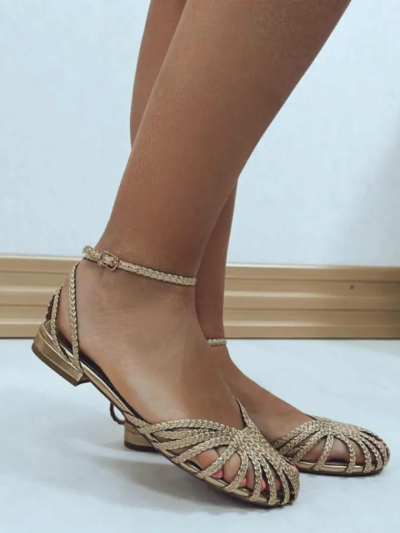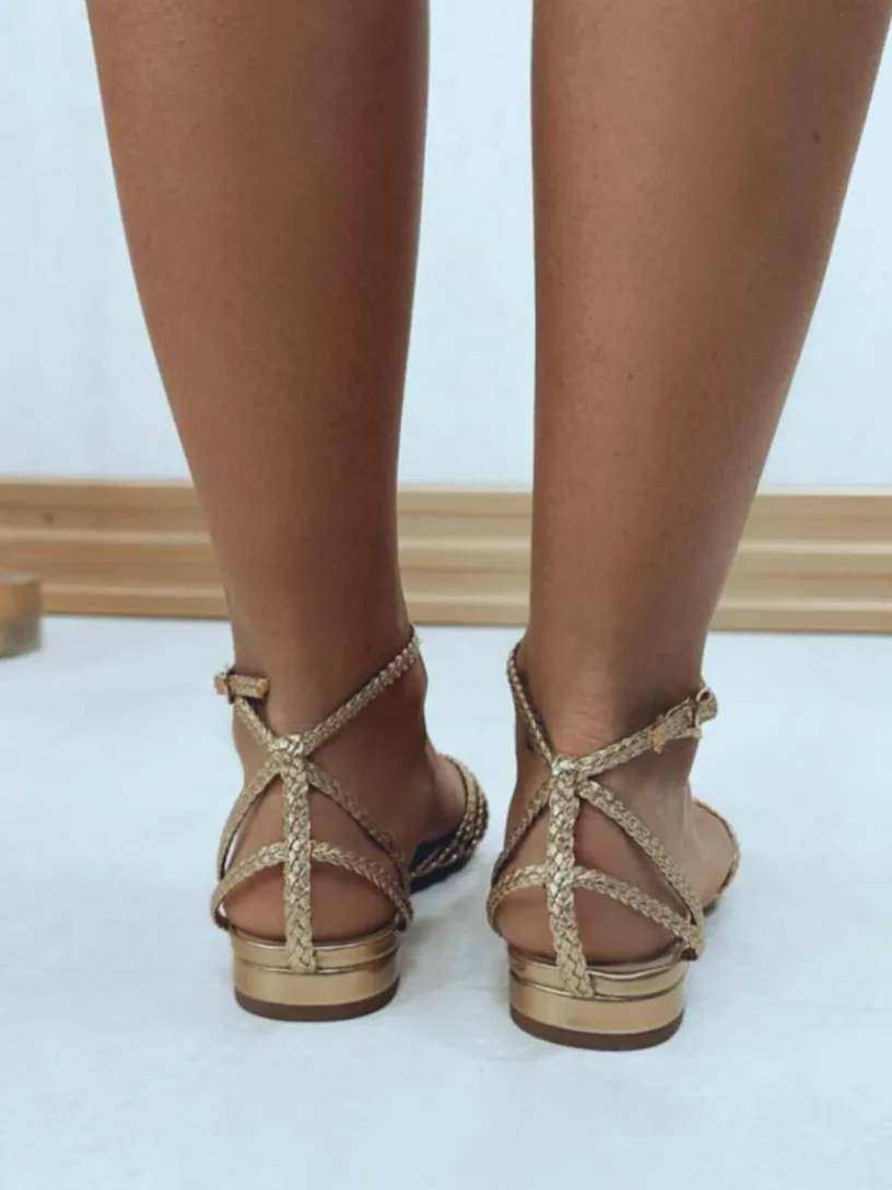 Si adoras las sandalias y además te encanta el oro y la plata, aquí has encontrado tu sandalia perfecta, nuestra Sandalia Trenzada. Esta sandalia plana disponible en dos colores va a formar parte de todos tus looks, estamos seguras. Estas sandalias van sujetas al tobillo y son semi cerradas en la parte delantera por lo que que son realmente cómodas.
