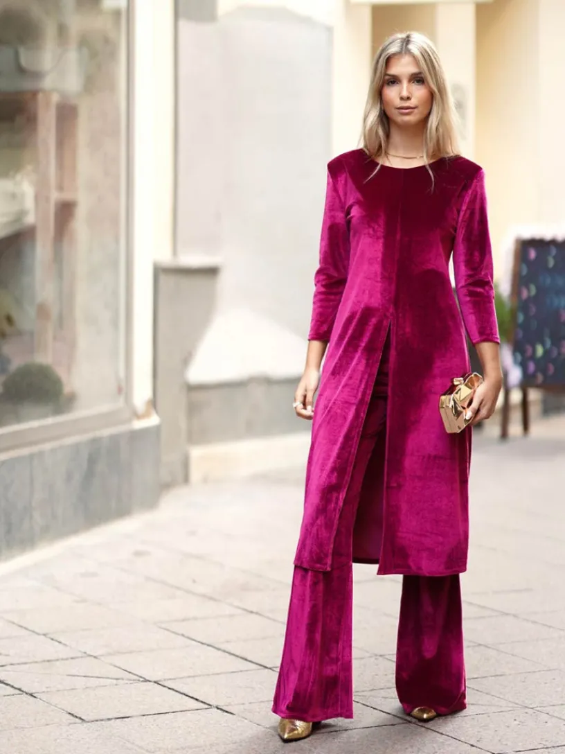 Después del éxito de nuestro conjunto Ragusa, vuelve renovado y confeccionado en terciopelo para que luzcas como una invitada ideal en la temporada de invierno. Nuestro Conjunto Terciopelo Gloria es perfecto para ocasiones como comidas de empresa, cenas de Navidad, bodas, y cualquier evento en el que quieras lucir ideal, ya que el terciopelo es un must-have esta temporada.