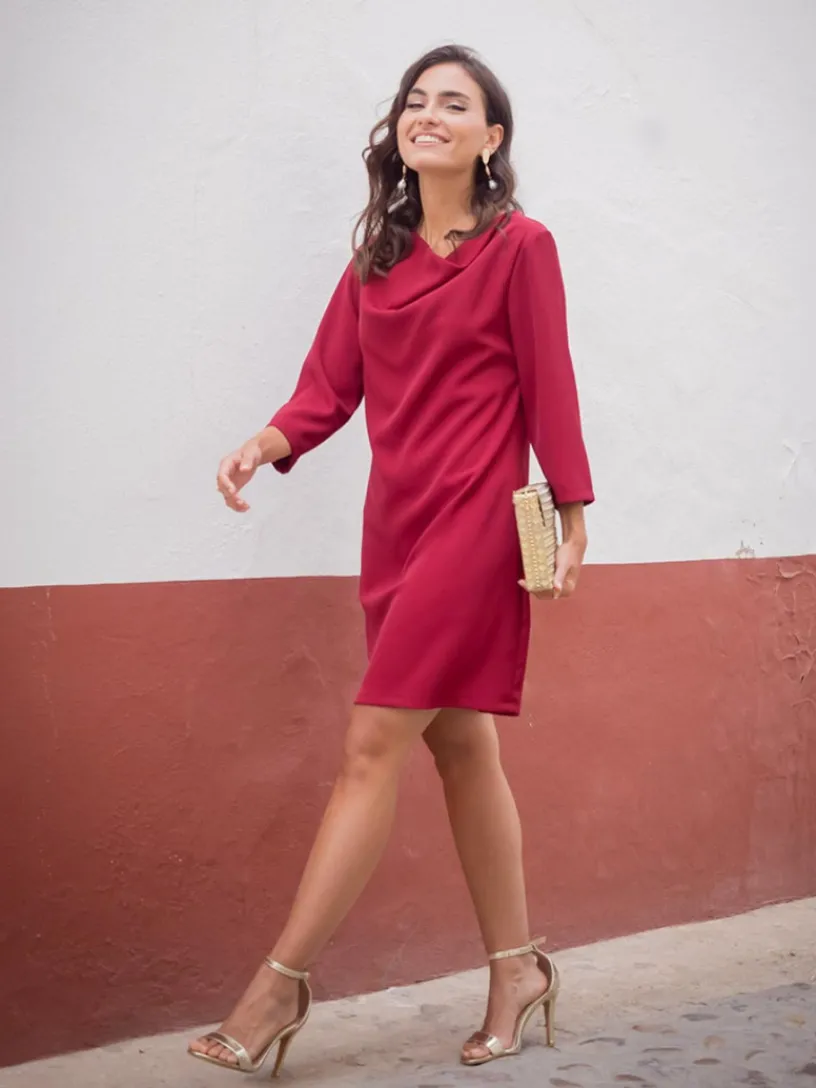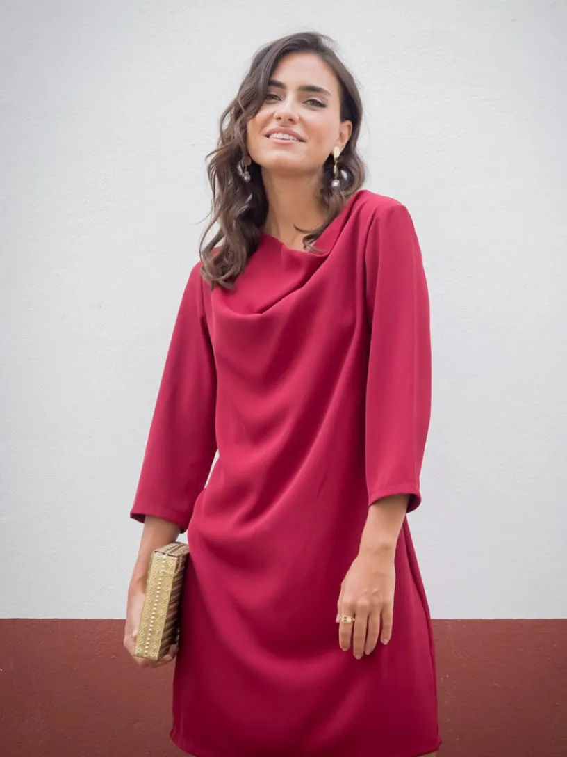 Vestido Amanita, un esencial para tu armario, diseñado para ofrecerte estilo y versatilidad en cualquier ocasión. Este vestido corto está confeccionado en un tejido con cuerpo, que proporciona una caída ideal y una sensación de comodidad inigualable.