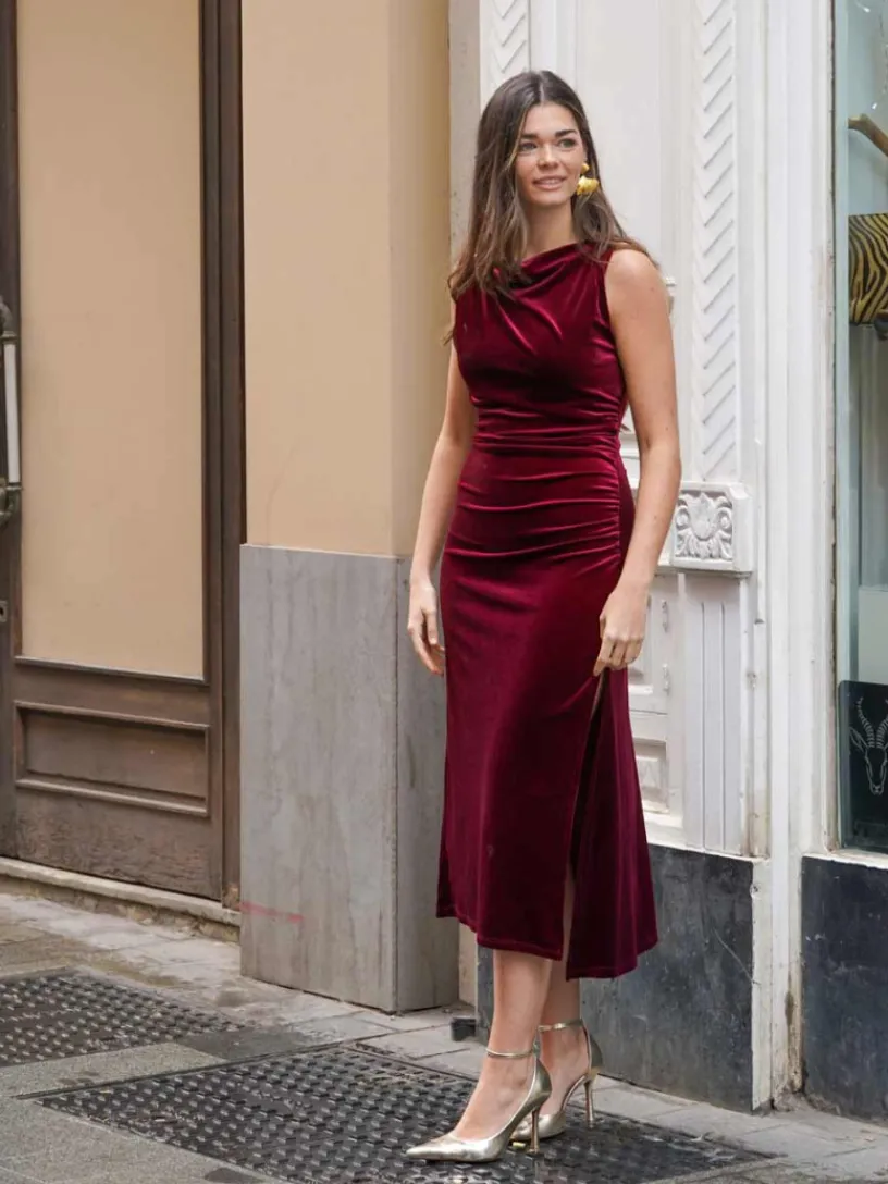 Disponible en una paleta de colores vibrantes como negro, burdeos y azul petróleo, este vestido se convierte en una prenda versátil que puedes combinar con stilettos y un clutch metalizado para un conjunto elegante, o con botines y accesorios discretos para un estilo más relajado pero chic.