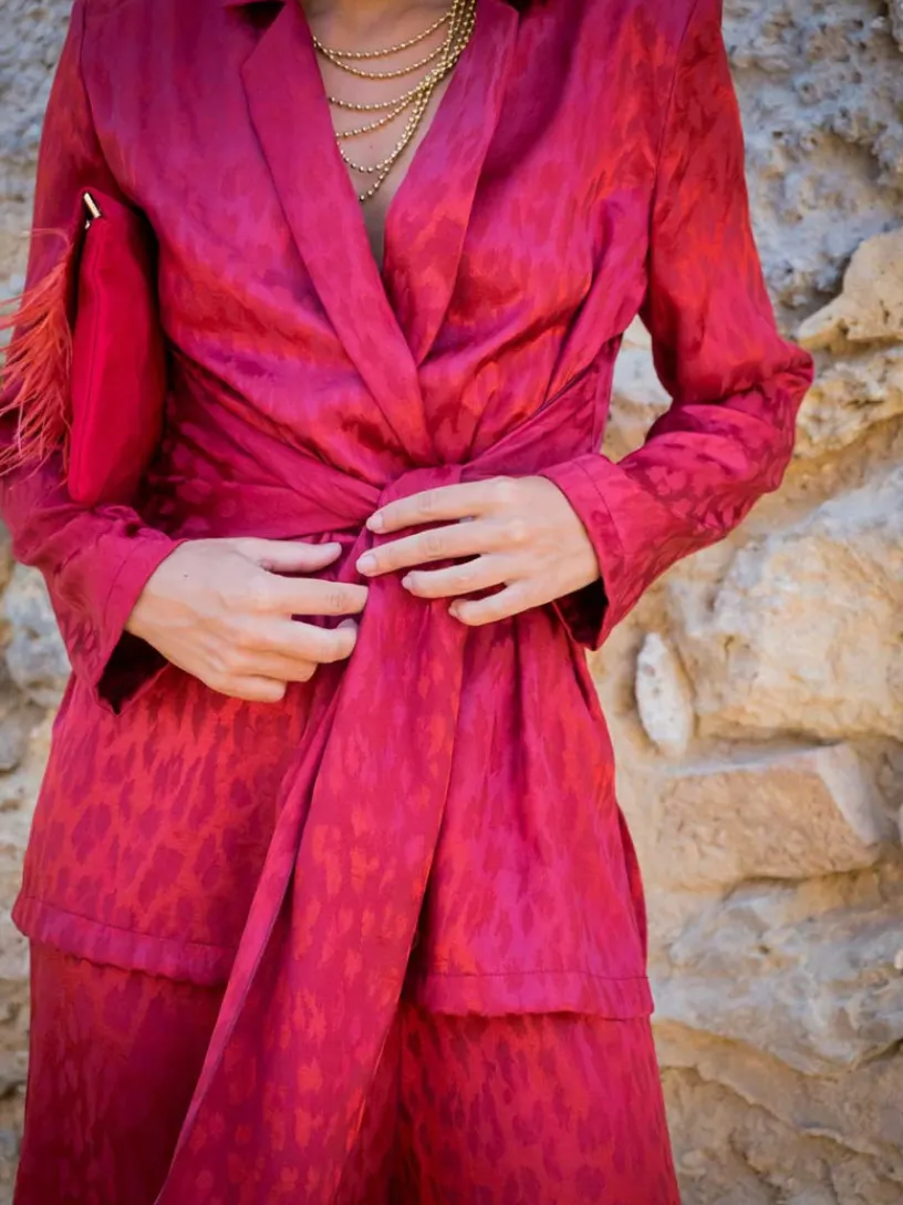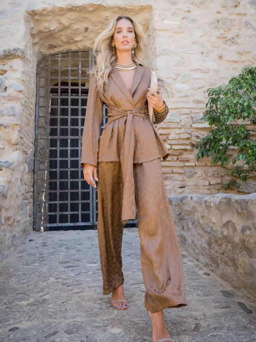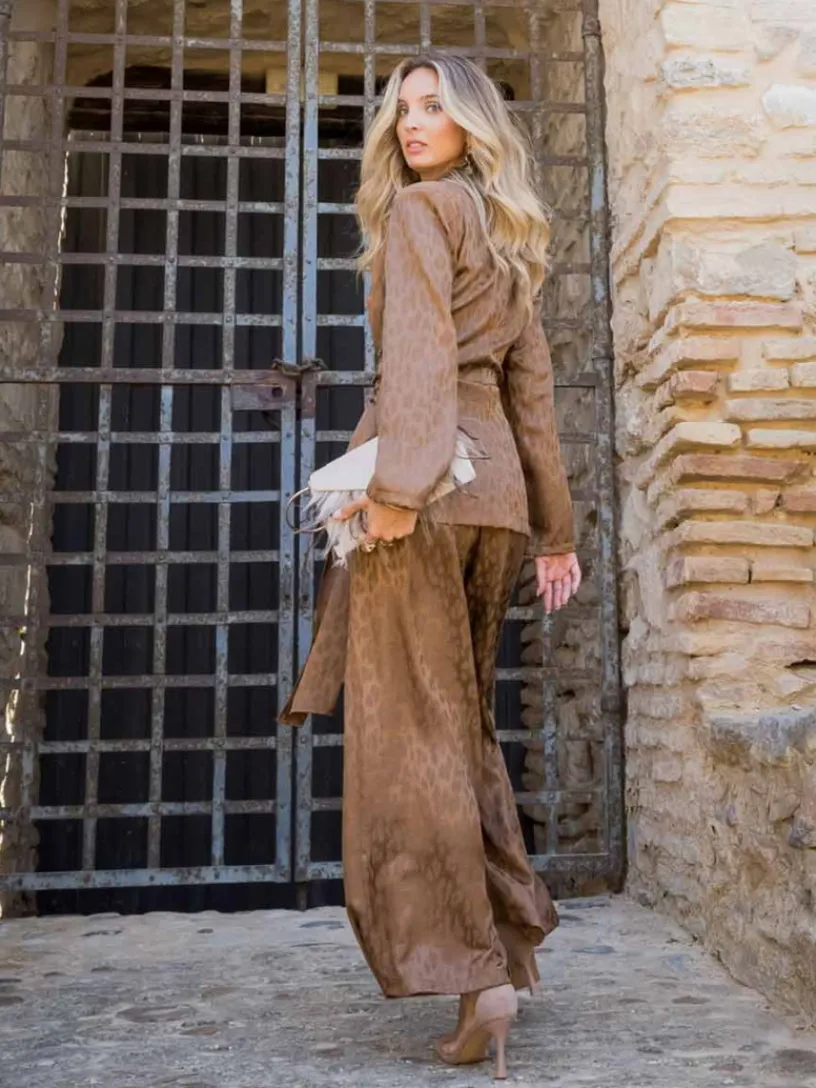Conjunto Bruma, confeccionado en tejido satinado con estampado animal print en tonos ideales para esta temporada de otoño invierno, es un diseño exclusivo de nuestra nueva colección que combina un toque clásico y moderno.