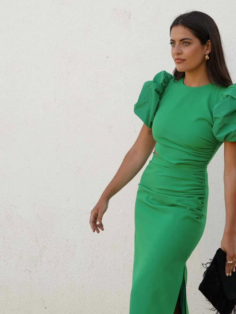 ¿Tienes un evento y no sabes qué ponerte? Descubre nuestro Vestido Alameda Summer. Este vestido de mujer destaca por su estilo cut-out en el lateral derecho. En contraste, el lado izquierdo se confecciona con un drapeado.