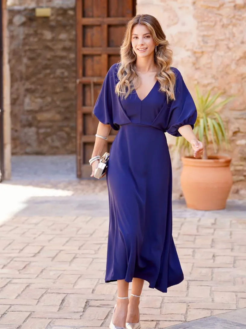 Vestido Lucero, parte de nuestra colección de fiesta más desenfadada, diseñado para destacar tanto en un evento como en una cena especial. Este vestido de fiesta tiene corte midi y combina elegancia y comodidad.