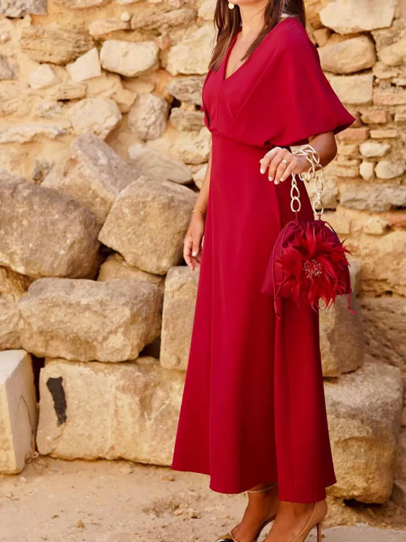 Se caracteriza por su escote en V, que realza la línea del cuello y aporta un toque chic. Las mangas amplias tipo murciélago añaden estilo, permitiéndote moverte con comodidad.