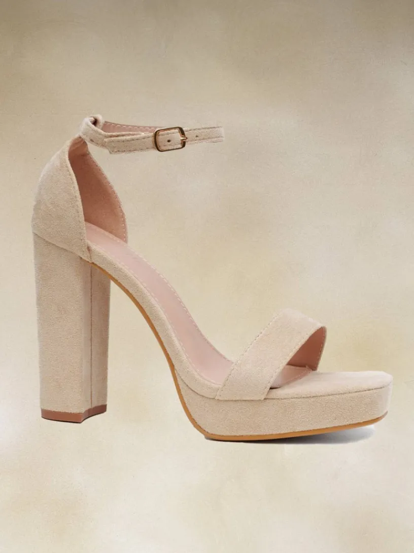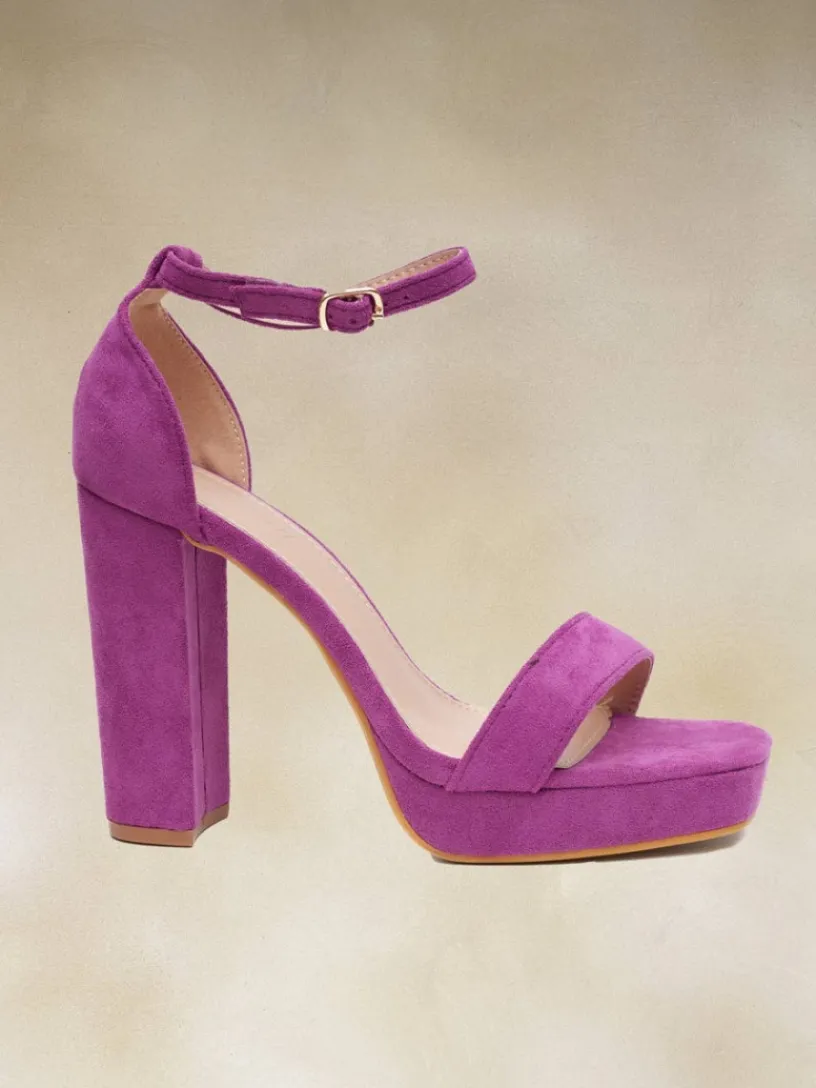Estos zapatos de fiesta van agarrados al tobillo con una hebilla para que te sientas más segura al caminar y puedas bailar sin problemas. Se presenta en tres colores, entre ellos el color dorado que es un clásico en zapatos de tacón, el color beige que va con todo y el tono púrpura tan de moda esta temporada.